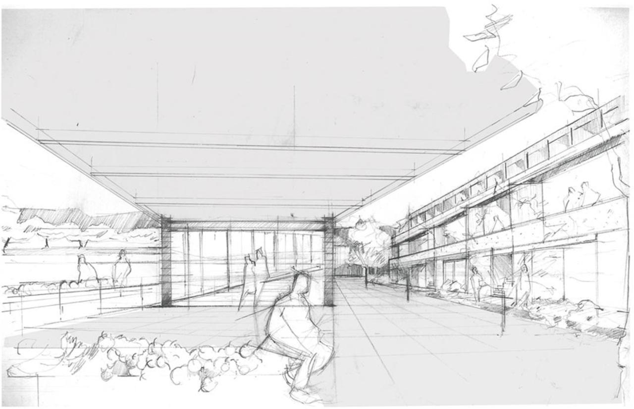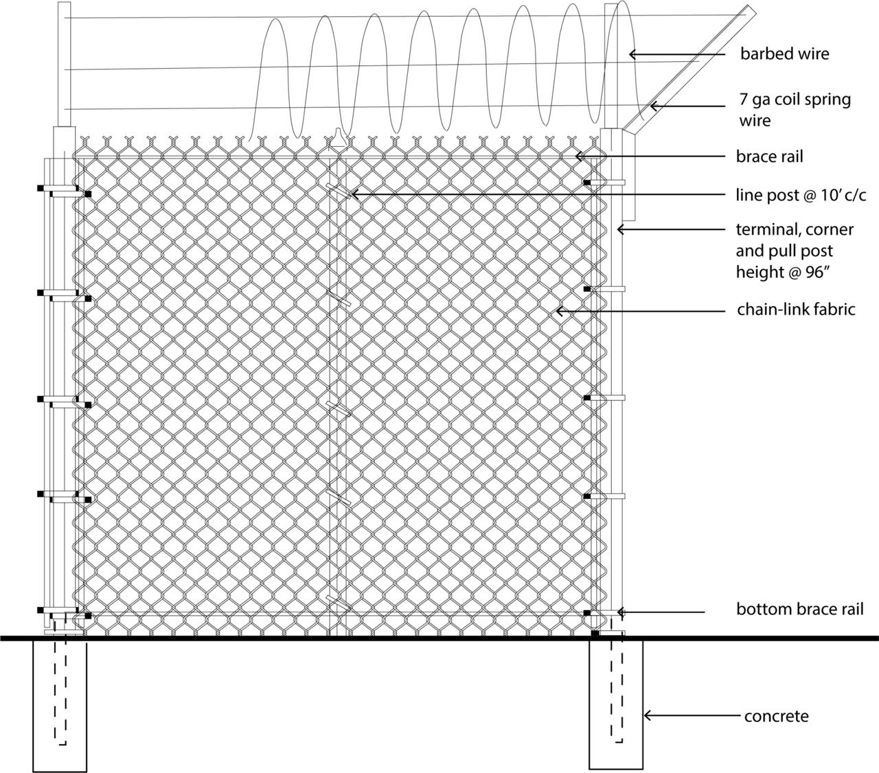 Standard drawing of a chain-like fence with additional barbed wire. By the Authors.
