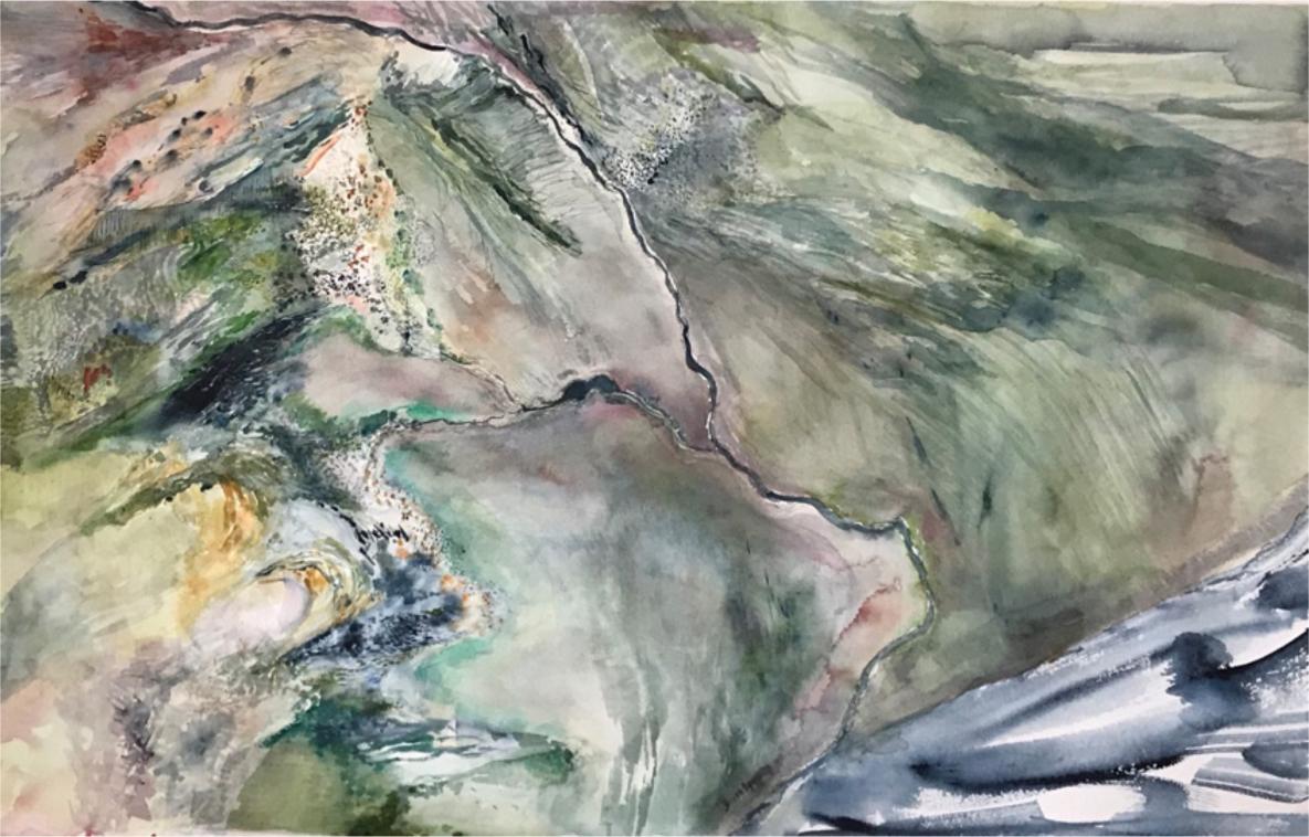 ending at the city of Xia-Xia. 26x41 inches, watercolour on 300 lb cold press paper. By the Authors.