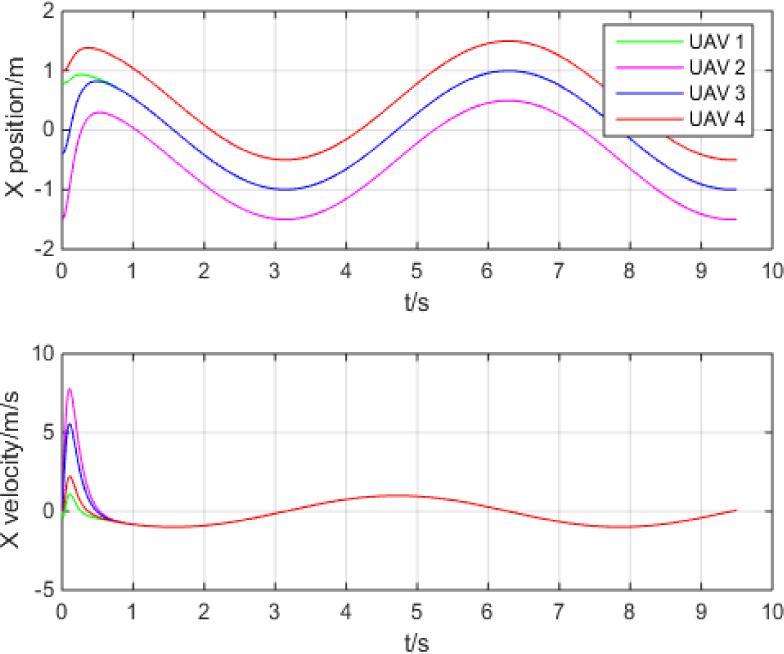 X-direction UAV position and speed curve