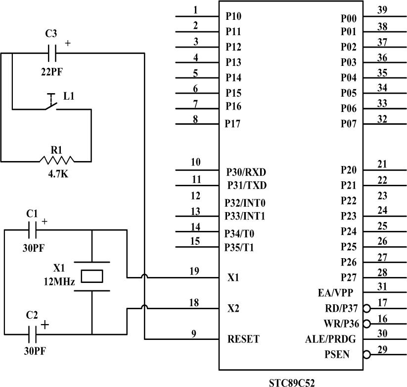 The minimum system of single chip microcomputer is composed of single chip microcomputer, crystal oscillator circuit and reset circuit[4]. As shown in Figure 2.