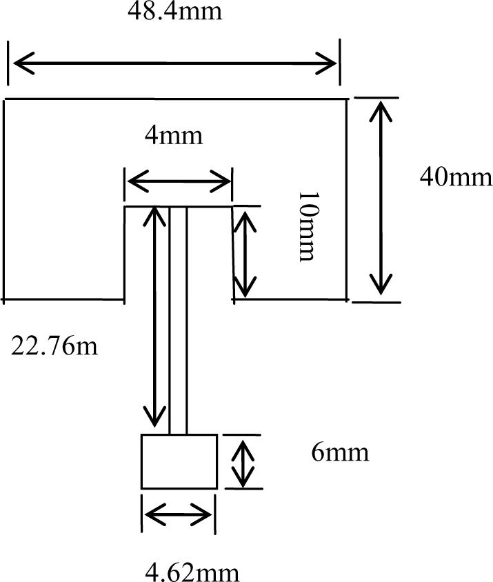 In this paper, the radiation patch of the center frequency f = 2.45GHZ would be used as an example, the thickness h of the substrate with Rogers5880 is 1.5mm, its dielectric constant is 2.2. According to the formula (1) – (5) [8] - [9], it can be obtained that the width w, length L were 40mm and 48.4mm respectively, as well as the input impedance.