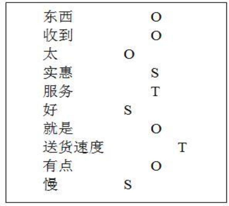 Sequence labeling: In order to extract more accurate theme words and sentiment words, this paper divides the elements in the text into 3 categories by using sequence labeling: the theme words is marked as T (Theme), the sentiment word is marked as S (Sentiment), and the rest of the words are labeled as O (Other).