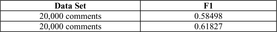 In the above table, there are no definite theme words in some comments, but there are corresponding sentiment words. In this case, the theme word is marked as NULL. After comparison, it is found that after optimization, the recognition of the theme words is more accurate than before, and the accuracy rate is further improved. The next table 5 is the comparison of the F1 values before and after the optimization. The comparison results from the table show that the F1 value of the optimized dictionary is about 3% higher than that before the optimization.