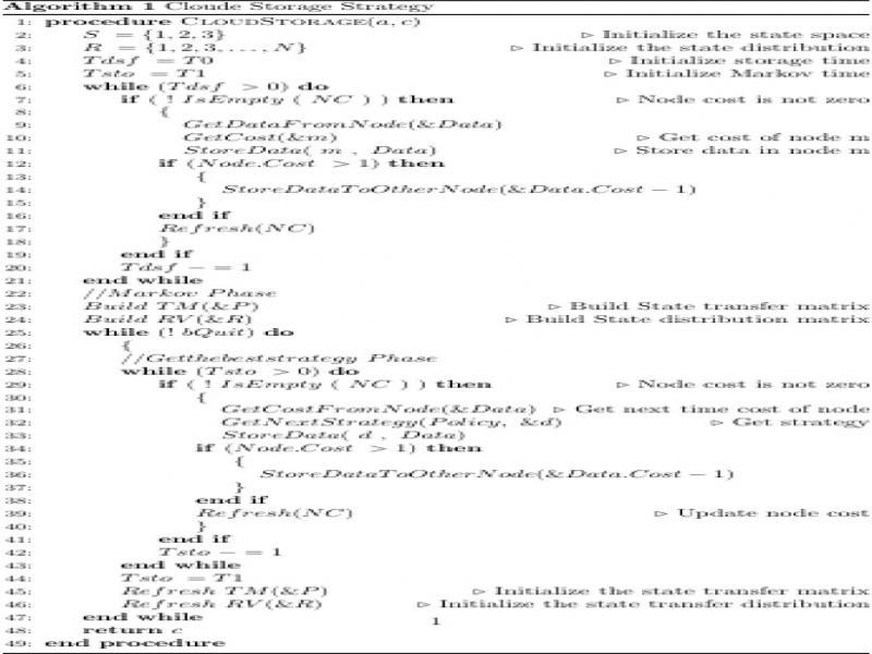 In formula (11), q is obtained by the length of the stored data block. The parameters d and l are obtained by timing first, and then calculated through the time. Start the timer when each data block is stored at the beginning of the storage till the response is received. Therefore, the evaluation of the storage quality in each storage node is carried out through the above method. Moreover, and the distribution matrix of the storage status is updated in stages. The pseudo-code of the algorithm in SReCSM is described in figure 2.