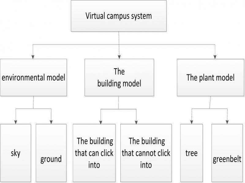 In the virtual campus system, the model is built based on the classification of the school buildings' appearance and structure.The same model is adopted for the buildings with the same appearance or structure and the relatively complex model is simplified through the splitting methodbefore modeling is carried out.