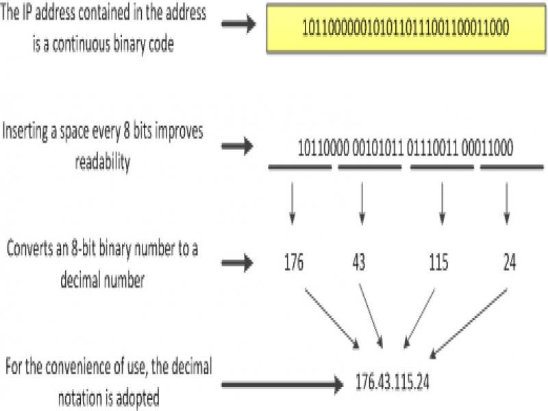 A dotted decimal notation is presented to improve the readability of IP addresses when it is 32-bit binary code. In IP addresses, every eight bits is represented in decimal, with a dot inserted between the digits. Figure 3 illustrates the convenience of this method.