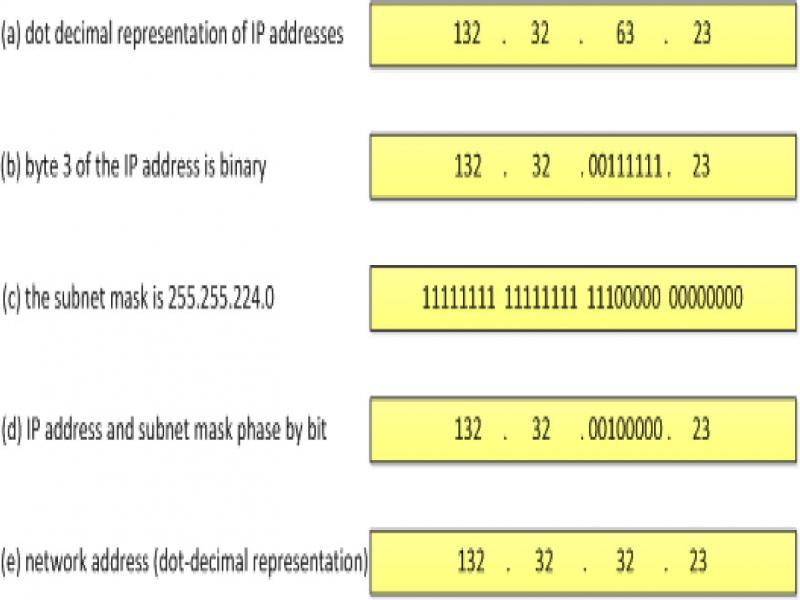 [Example] the known IP address is 132.32.63.23, and the subnet mask is 255.255.224.0. Try to find the network address.