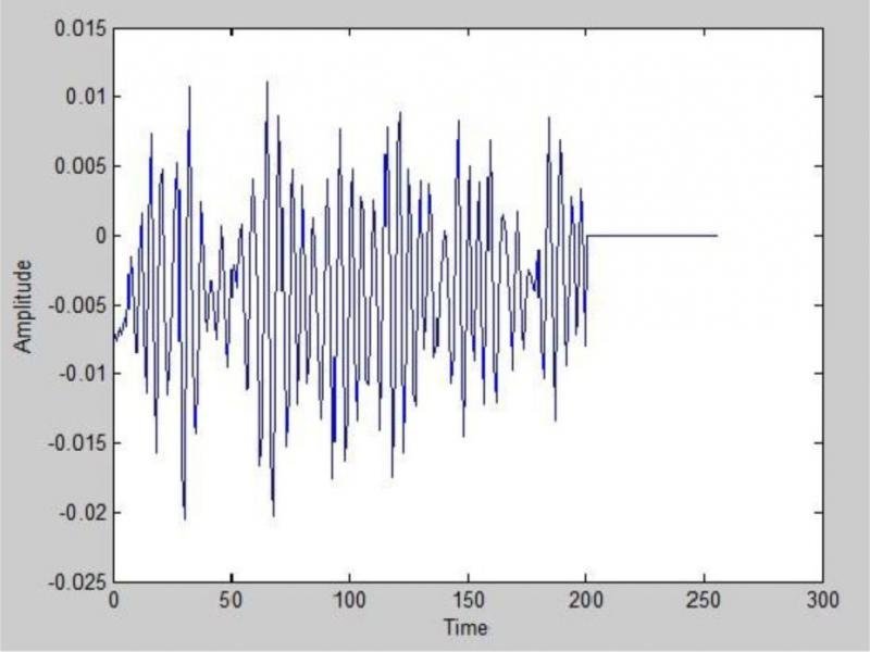 Framing sub-stage divides the continuous speech signal into frames of B samples, with adjacent frames being separated by A where A < B. First frame consists of first B samples. Then, second frame begins with A samples after the first frame, and overlaps it by B–A samples and so on. This continues until all the speech is accounted within one or more frames. Typically, B and A are chosen as 256 and 128 respectively. Figure 2 shows a speech signal after it has been framed.
