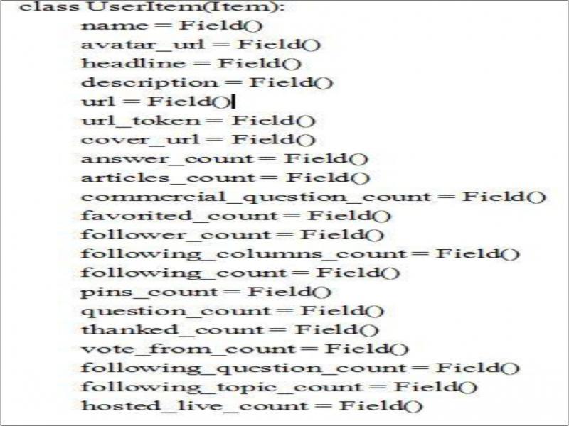 Spiders.py is the core of web crawling module and an important part of the whole project. It defines the core business logic. Followee_info_parse, which can request user’s detailed information through fan list, also has the function of turning pages. Its implementation logic is exactly the same as follower_info_parse, except that the object of the request is different. One is to request detailed information from the person concerned, the other is to request detailed information from the person concerned with the current user.
