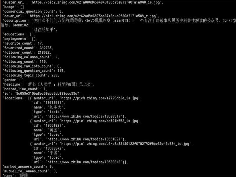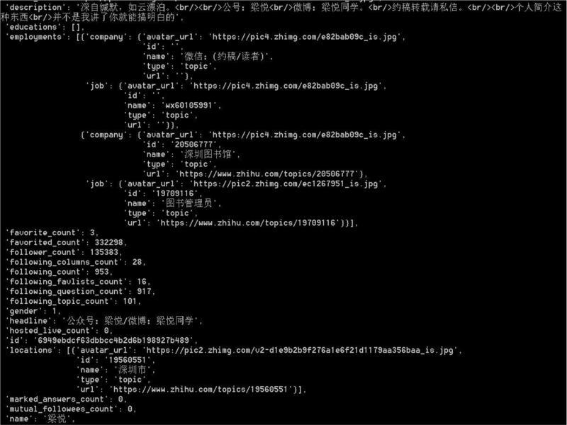 After the program runs, it gets a database named “zhihu” and stores all the information in the user table.