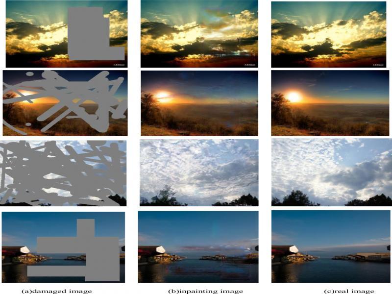 Image inpainting is one of the most popular areas of deep learning. Its basic principle is to give an image of a damaged or corroded area, and try to use the intact information of the known area of the damaged image to inpainting the damaged area of the image[1-2]. Digital image inpainting methods can be divided into two major categories: traditional image inpainting methods and deep learning-based image repair methods. Traditional image repair methods can be divided into: structure-based image repair technology and texture synthesis-based image inpainting technology. Both image inpainting algorithms based on structure and texture can inpainting the loss of small areas such as folds. With the expansion of the missing areas, the inpainting effect gradually deteriorates. There are problems such as incomplete semantic information and blurred images in the inpainting results, which makes the image inpainting effect ineffective, ideal. The emergence of deep neural networks allows the model to obtain the understanding of image semantic information through multi-level feature extraction, and to a certain extent improves the repair effect of large-area damaged images.