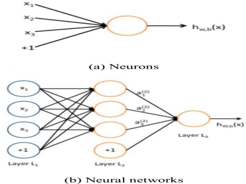 The basic building blocks of a CNN are also neurons one by one, containing weights with learning abilities and paranoid term constants. When multiple neurons are combined with a hierarchical structure, a neural network model is formed. A figurative representation of both is shown in Figure 1.