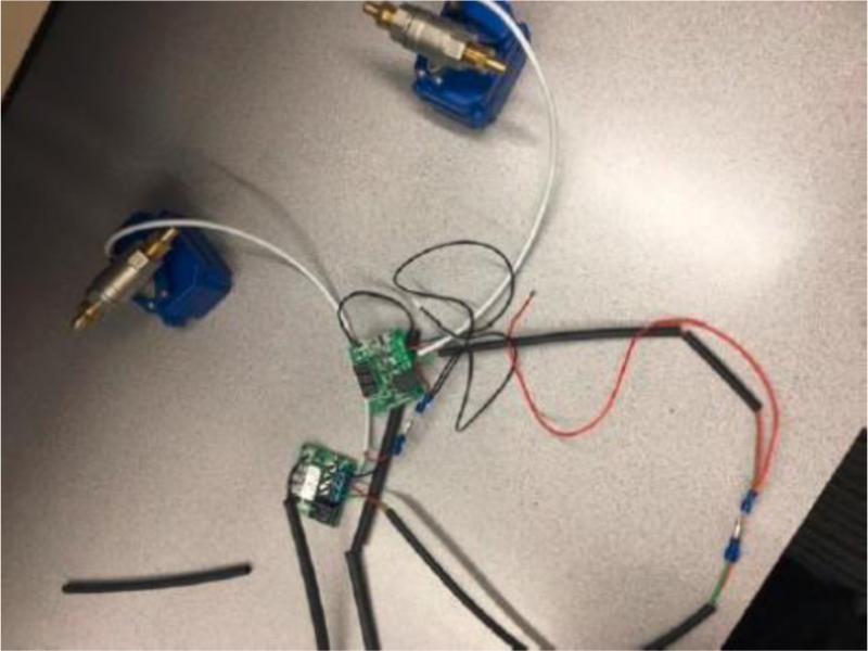 The slides were manufactured using a Solidworks model, which was then converted over to a CAM file. The milling machines would have taken about 3 hours per slide, so we opted to use the LPM. The process with 26 minutes per part, which was a noticeable efficiency difference. The center hole was a quarter of an inch and was pressed out. The plate was then clamped down into the LPM and the larger holes began to mill. Then the circles were cut out from the existing material, with a helix pattern. A hole was drilled at both ends of the shell to allow the ends of the coil to protrude out so that we could connect the fluidics tubing. Once that was all done the end caps were placed on the ends of the shell which shrank the shell diameter from 6” to 4”.