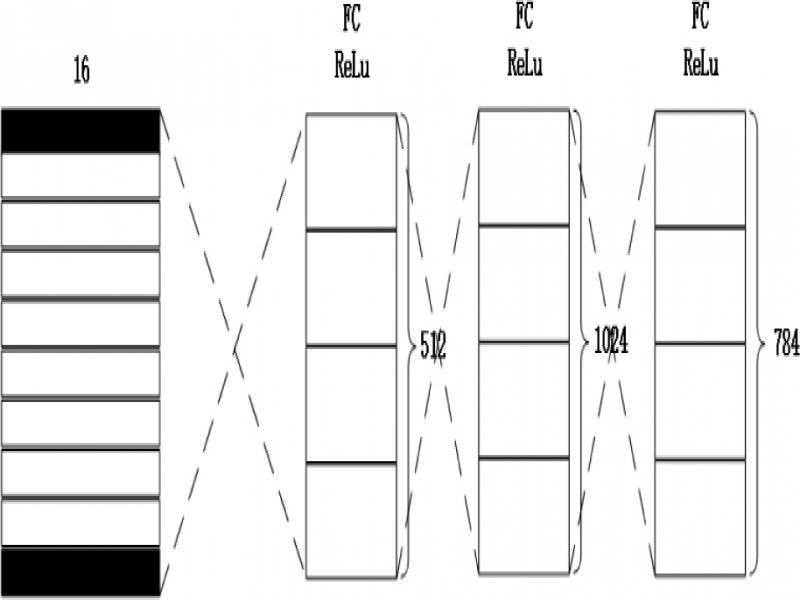 The decoder structure in this paper is the same as capsnet, as shown in the figure. The goal of capsnet model optimization is to calculate the edge loss for each number to allow multiple numbers to exist at the same time. In addition, capsnet can reconstruct the input image based on the instantiation parameters obtained by previous processing. In the training process of image reconstruction, only the activated capsules are allowed to participate in the adjustment of three-level fully connected network at each time. The structure mainly responsible for reconstructing the image is the decoder, which receives a 16 × 10 matrix from the digital capsule layer, reconstructs a 28×28 image after three full connection layers.