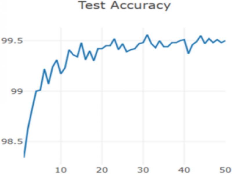 As shown in Figure 5, the highest accuracy of this training is 99.62% in the 43rd epoch.