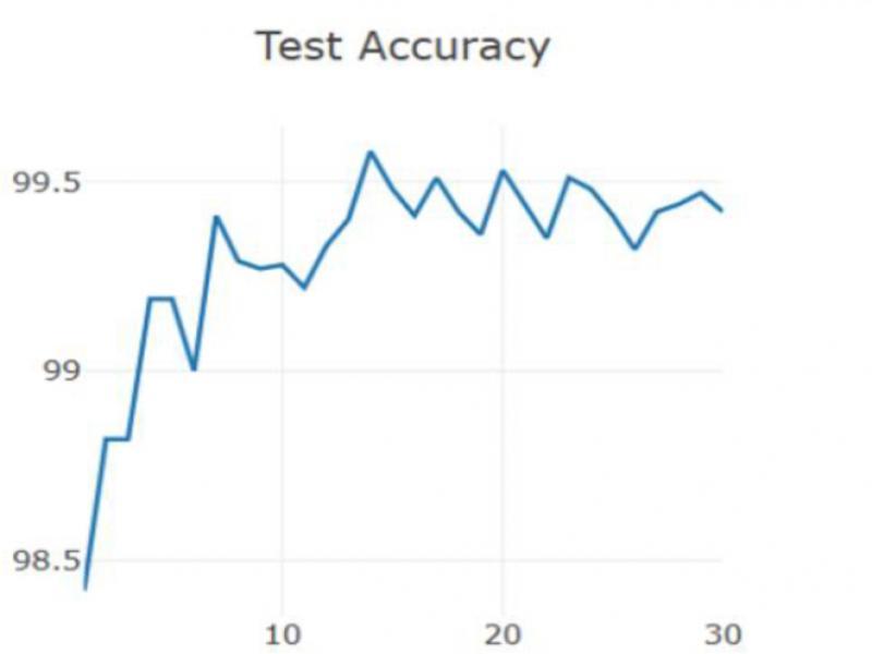Test accuracy chart of deep capsule network under 30 epochs