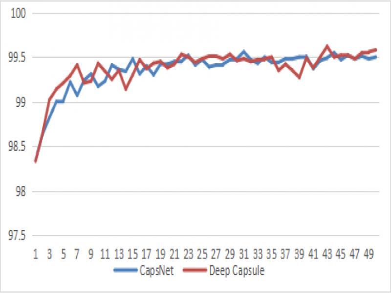 Test accuracy chart of deep capsule network under 50 epochs