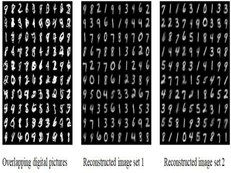 However, the situation shown in Figure 16 still exists in the reconstructed picture. The original overlapping picture is the overlap of the numbers ‘9’ and ‘4’. The two reconstructed images are like ‘9’, without ‘4’, the reconstruction is wrong, the error rate after the improvement is still 6.47%.