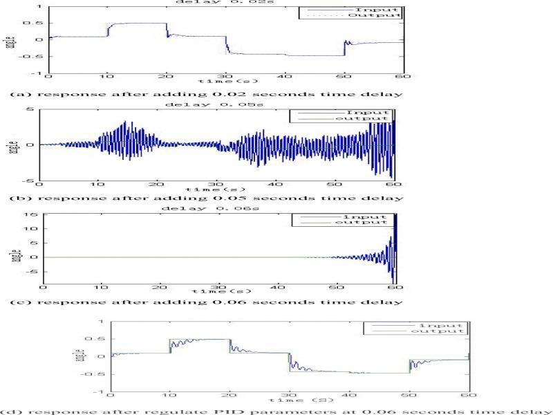 Realing the PID parameters of the of increase 0.06 seconds delay link instability control system obtain the response curve shown in Fig. 3 (d). Visible, by adjusting the controller parameters really can make the original unstable closed-loop control systems becomes stable and meet the remote closed-loop control requirements of system which not high request about fast like robot arm. System control parameter adjustment is a bit trickier, as the delay size and system parameters change constantly adjusted to limit its scope of application, especially not for interstellar adventure, the work environment unknown controlled object, therefore, intelligent control links with adaptive require introduction.
