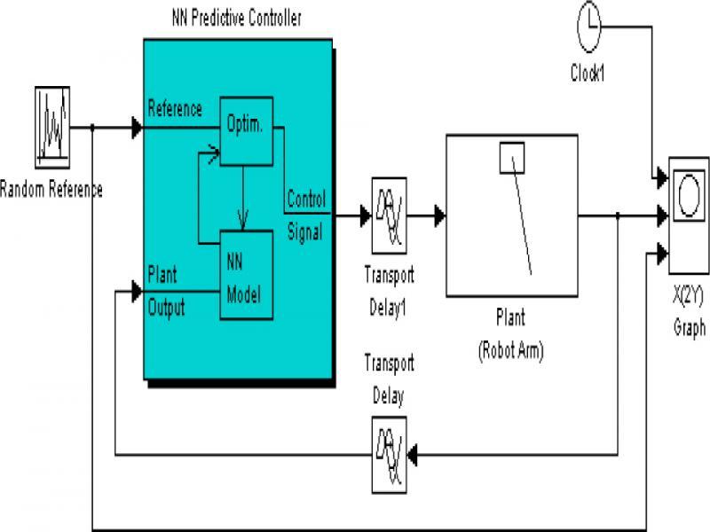 Build the Simulation block diagram shown in Fig. 6 under robotic arm Simulink environment, network training based on neural network predictive control by the steps in Fig. 4-Fig. 5, and at the role of the same random input signal gradually adjust the value of delay to simulation. The results in Fig. 7. Show that the prediction control based on neural network has a good control performance to the fixed delay network. Further used random delay module shown in Fig. 8 (a) instead of fixed delay module in Fig. 6 immediately delay module for delay characteristics of input shown in Fig. 8(b), where In. mat file stored random input signal in Fig. 6. There are used random input signal stored in this file in order to compare the simulation results in the simulation. Finally, simulation under the random delay conditions and results shows in Fig. 8(c). Whether a fixed delay or random delay neural network predictive controller can satisfy the closed-loop control requirements in the network delay conditions.