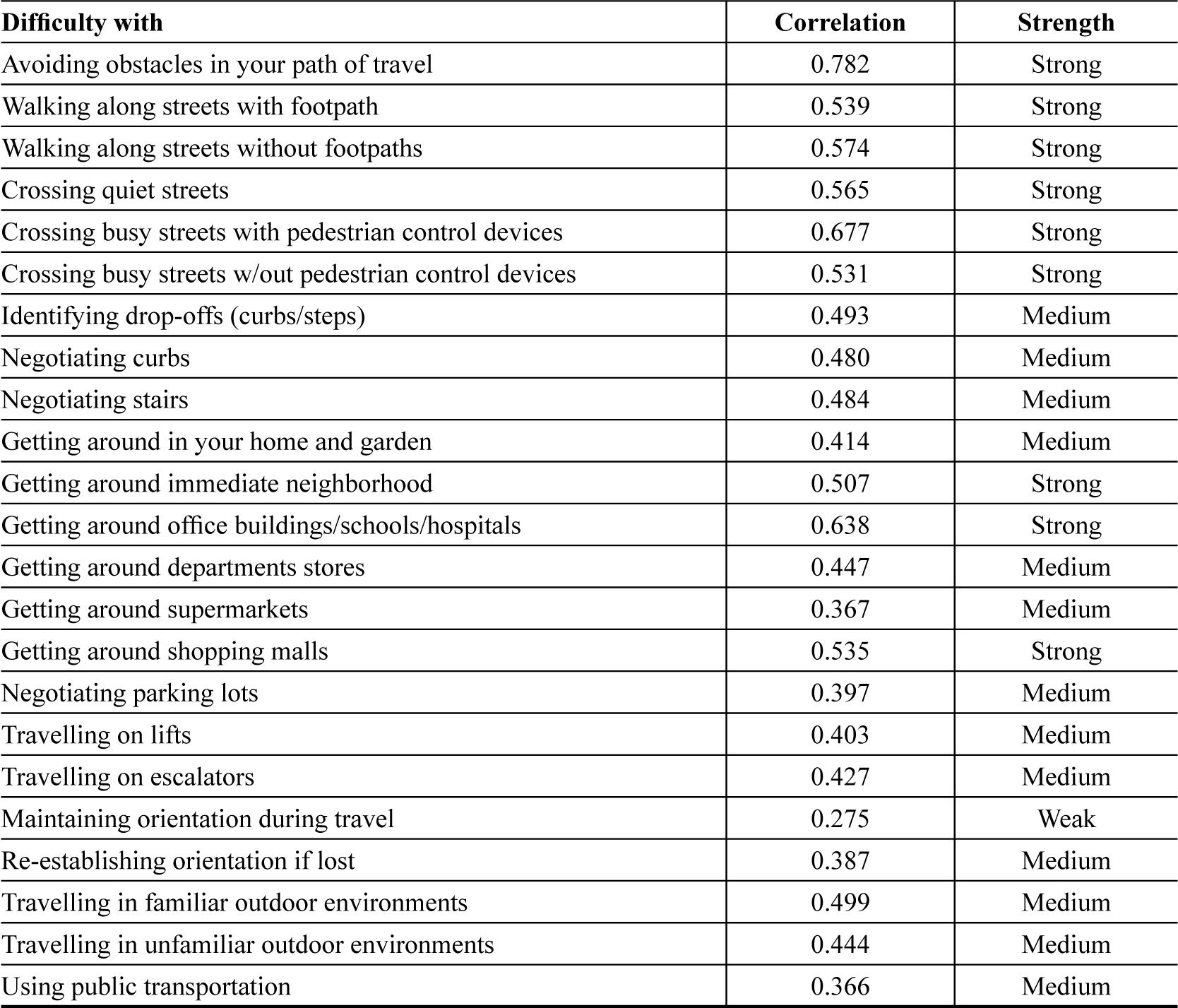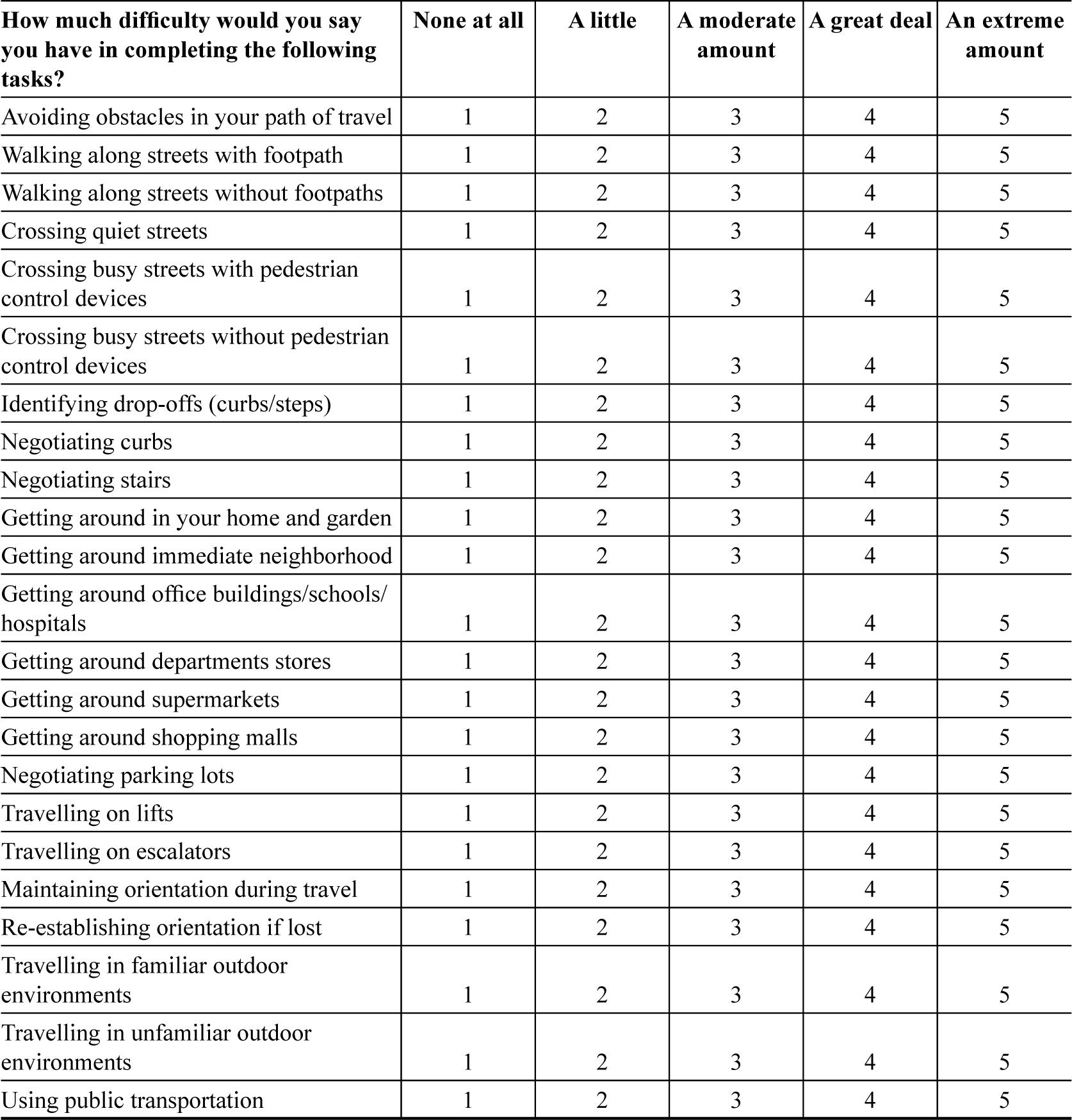 Development of the Difficulty with Mobility Questionnaire: A Pilot Study