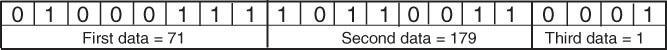 Illustration of quantization result in binary form The bits are then grouped into 8 bit sized blocks, which produces 71 179 1 (in decimal), as shown in Figure 10.