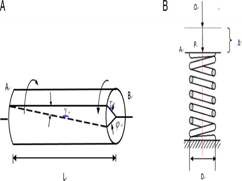 (A) SMA rod under torsion; (B) SMA spring under deformation.