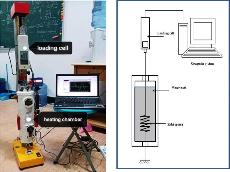 The experimental setup for testing SMA spring.
