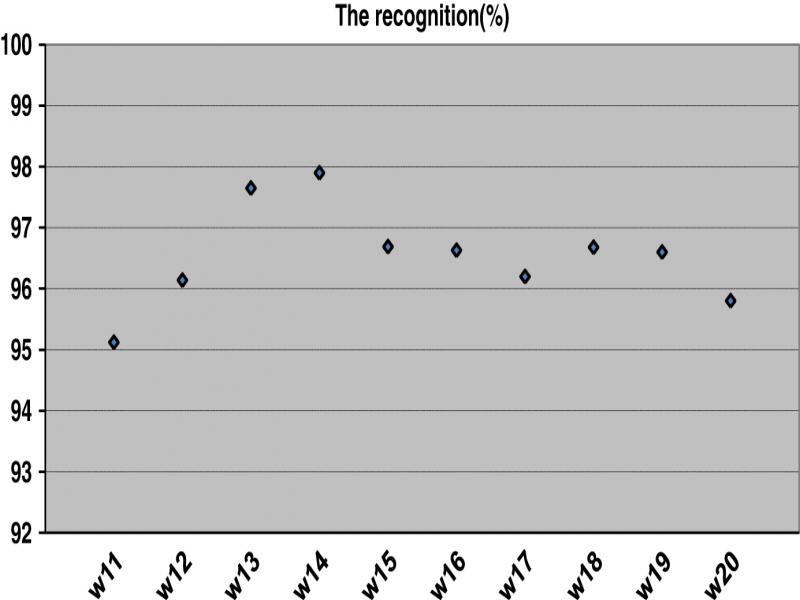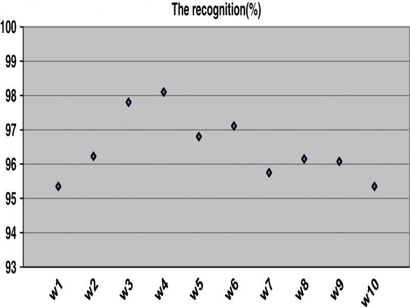 (1) NRWi: represents the number of recognized word Wi.NTWi: represents the total number of the word Wi in the base of tets.RR: represents the rate of recognition. -