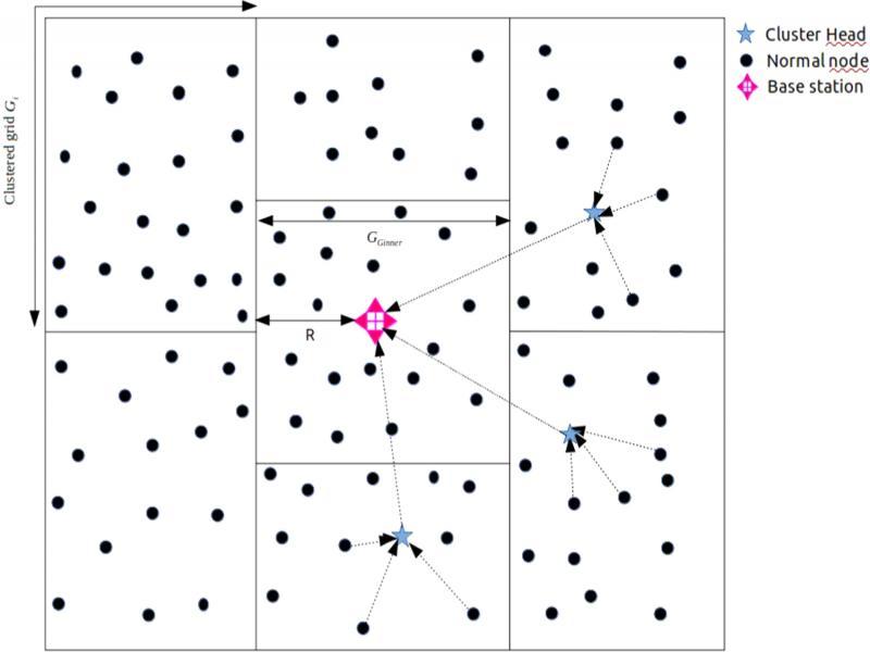 Alami and Najid (2017) presents a technique for hierarchical routing protocols to enhance energy efficiency in WSNs, namely LEACH-G5. This technique divides the network area into the inner Grid and clustered Grids. In an inner Grid, the nodes directly transmit the data to the BS; whereas, in the clustered Grid, the nodes are organized into micro-Grids and thus each node transmits the data to the BS through its respective CH.