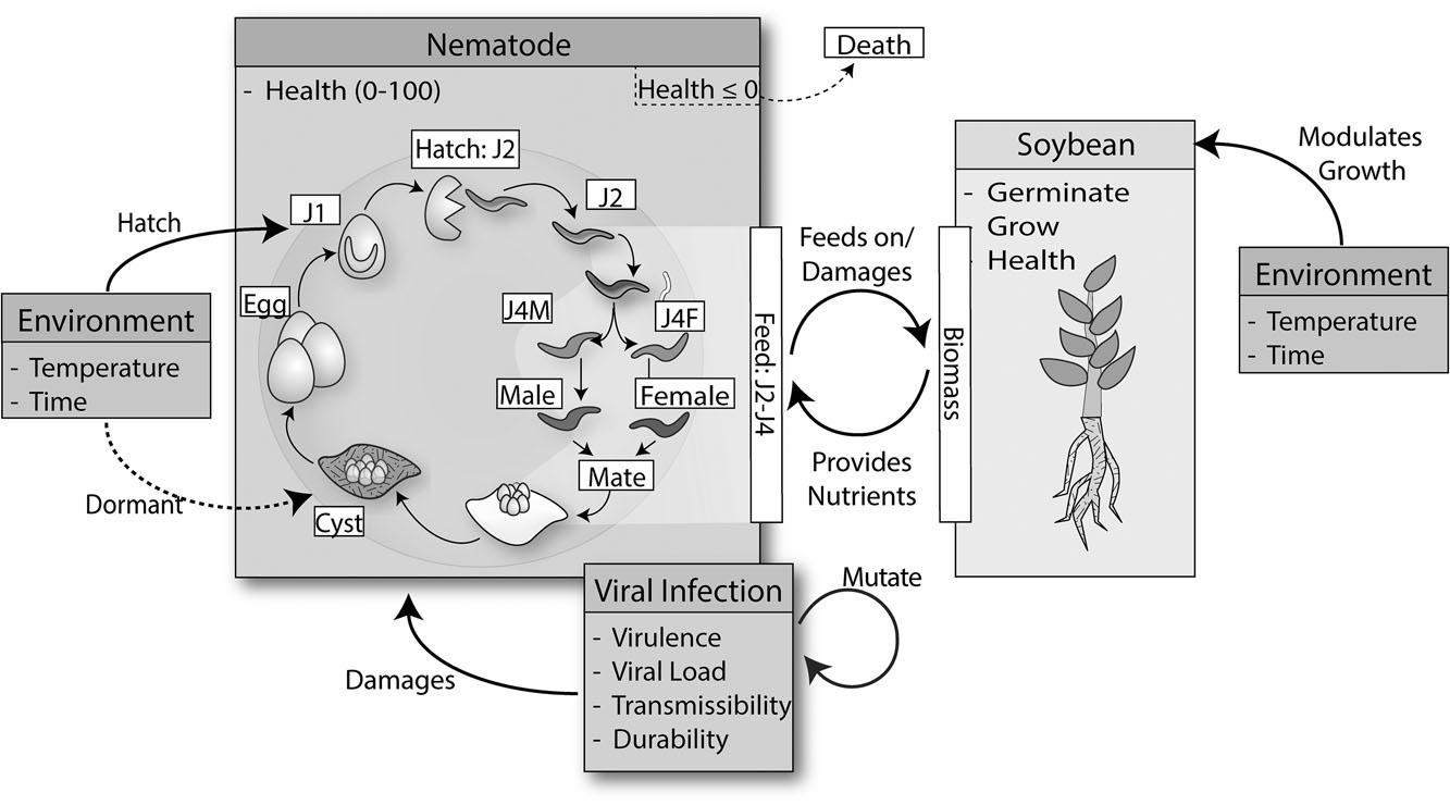 Environmental set points and nematode stages modeled in the Soybean Cyst Nematode Simulation Framework (SCNSim) based on figures in Schmitt et al_ (2004)_
