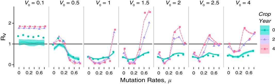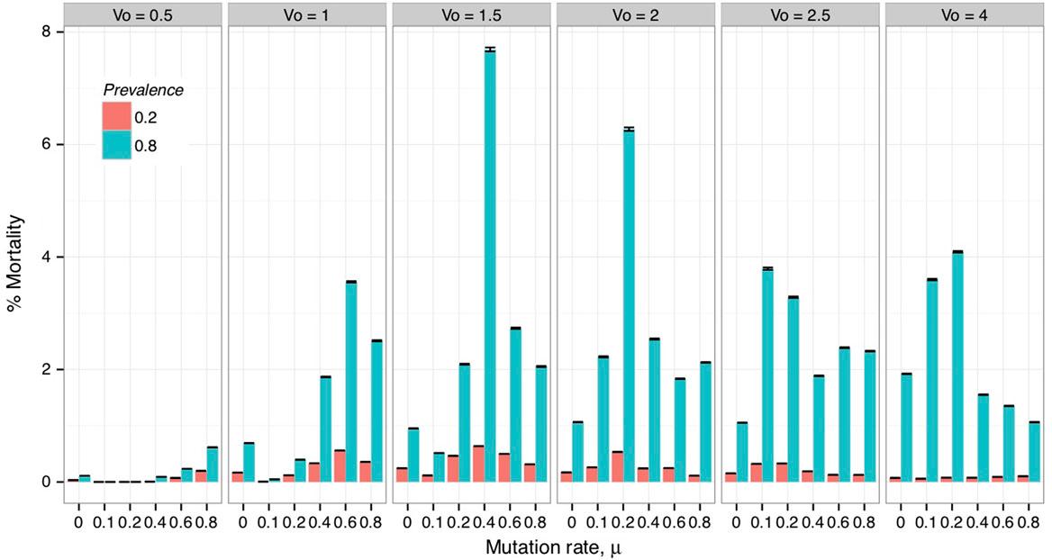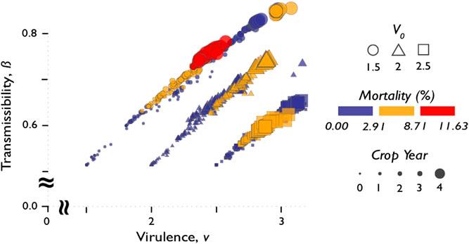 | Virulence (V 0) | 0.1, 0.5, 1, 1.5, 2, 2.5, 4 | |