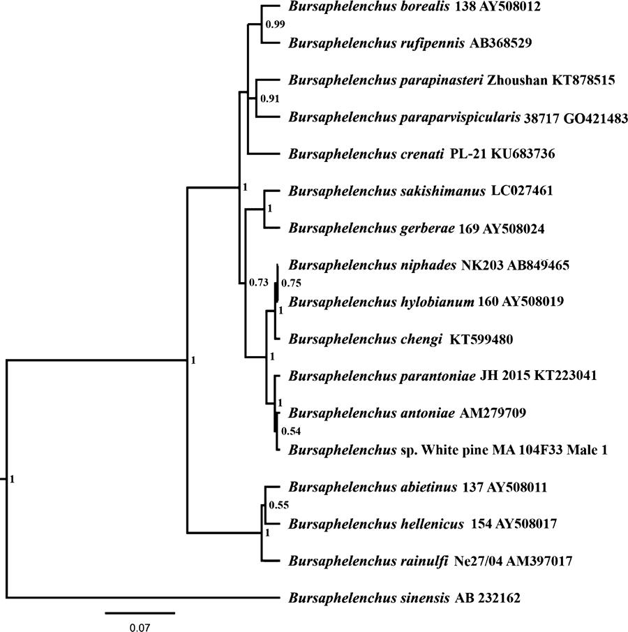| Bursaphelenchus niphades | BnFFPRI | AB849479 | 708 | Japan |