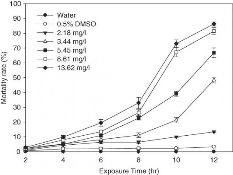 Mortality rate (%) of H. glycines J2 exposure to fosthiazate with exposure time.