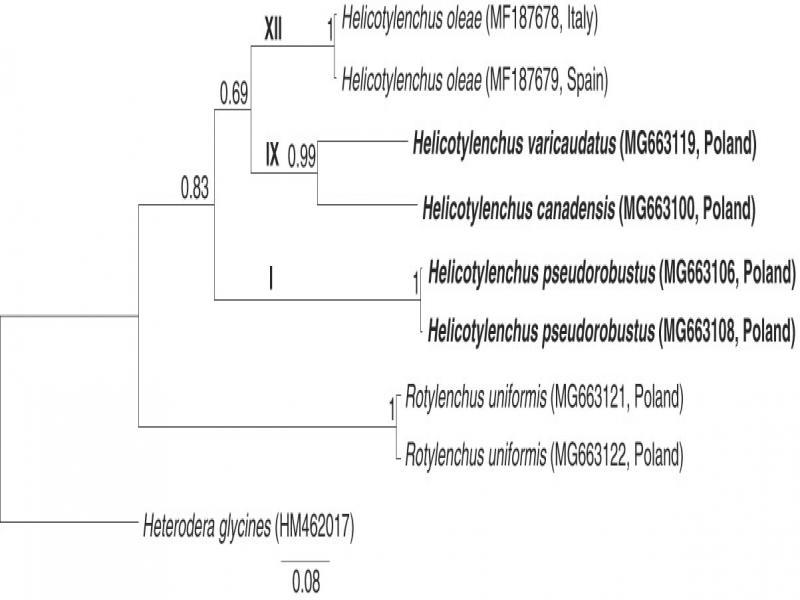 | Rotylenchus | 1 | KW 0084/01 | Czernia (Lubusz) | N 51.534330 E 15.240710 | Secale L.; cultivation | MG653536 | – |