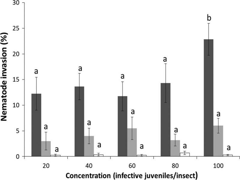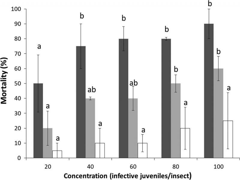 Lethal concentrations of Heterorhabditis amazonensis to kill different stages of Maconellicoccus hirsutus_