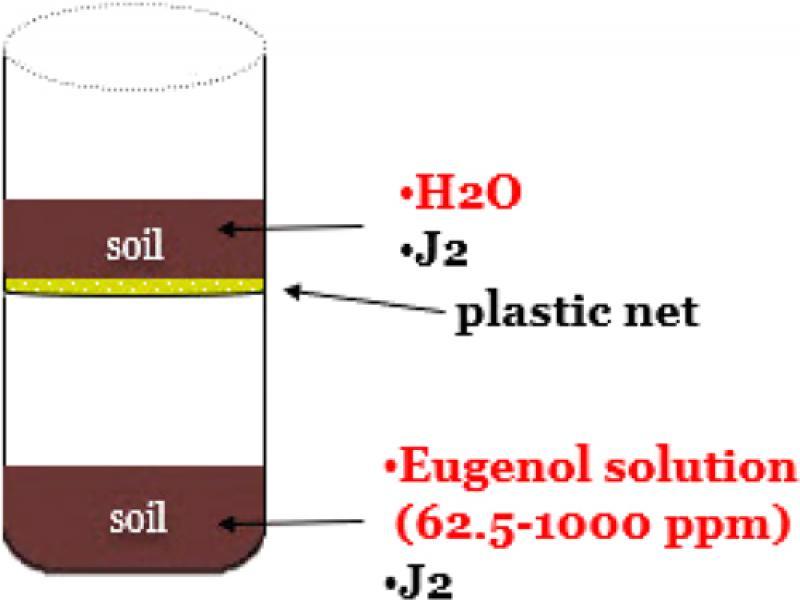 Effect of eugenol on the motility of Meloidogyne javanica J2 after immersion in test solutions at the doses of 1,000, 500, 250, 125, 62_5, and 0 ppm for 12, 24, 48, and 96 hr_