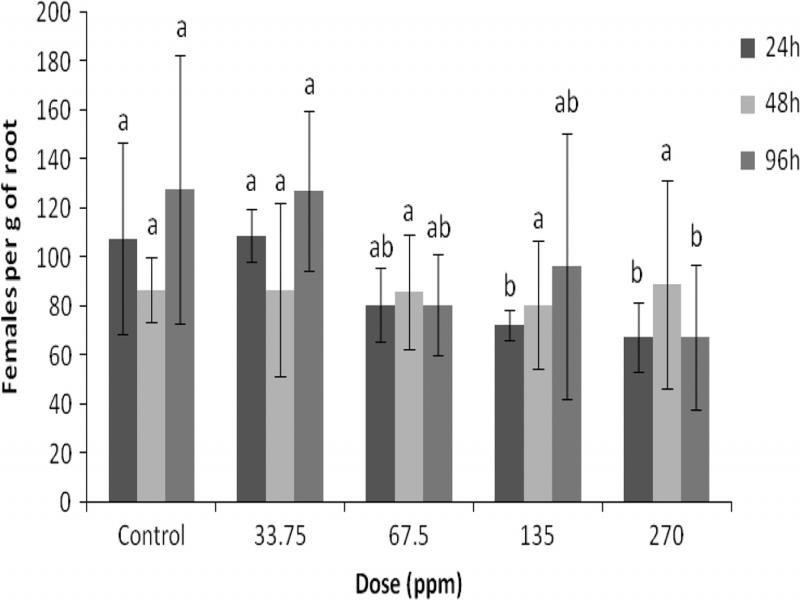 | Dose (ppm) | Dead J2 (%) | Dead J2 (%) | Dead J2 (%) | Dead J2 (%) |