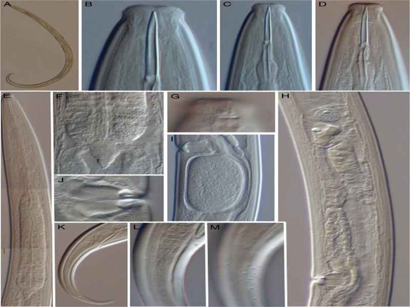 ![Epidorylaimus procerus sp. n. (female, LM). A: Entire. B-D: Anterior region in lateral median view. E: Neck region. F: Pharyngo-intestinal junction. G: Lip region in lateral surface view. H: Anterior genital branch. I: Uterine egg. J: Vagina. K: Caudal region. L: Anterior portion of the caudal region in median view. M: Same in submedian view, showing the blister-like elements mainly subventrally and ventrally [scale bars: A = 500 µm; B-D = 10 µm; E, H, K = 50; F, I, L, M = 20 µm; G, J = 5 µm].](https://sciendo-parsed.s3.eu-central-1.amazonaws.com/6472210c215d2f6c89dbcd6a/j_jofnem-2020-112_fig_002.jpg?X-Amz-Algorithm=AWS4-HMAC-SHA256&X-Amz-Content-Sha256=UNSIGNED-PAYLOAD&X-Amz-Credential=ASIA6AP2G7AKDW2LIUJ4%2F20260121%2Feu-central-1%2Fs3%2Faws4_request&X-Amz-Date=20260121T183243Z&X-Amz-Expires=3600&X-Amz-Security-Token=IQoJb3JpZ2luX2VjEP3%2F%2F%2F%2F%2F%2F%2F%2F%2F%2FwEaDGV1LWNlbnRyYWwtMSJGMEQCIHrWN%2FUMmpFL6CUjkBMQi4NWkBHjOkzQUoOB0Nu9zhylAiAkJI7ouyDTRwgJx4o9nRBjZgWKIrmXPxQ8ytxdSB8JyirGBQjG%2F%2F%2F%2F%2F%2F%2F%2F%2F%2F8BEAIaDDk2MzEzNDI4OTk0MCIMTdnn4A2ASFhHn8C0KpoFczFzmRWSWYWx%2BF2YtWRA1bXTCvjeiFoF7J%2BT50N8IcMQbTODgUqHYeM0ZTUP2YtQ0dk6F3jN%2FLyLg3z9n1qcuEw4OeHwMhosBSyc4oBQYZEfshPFbCYf51MKuuZuXIkKeAOSc%2FCTVpy5q8bCb0hS7JUBYYGN0sClPAOCo4V3XmDaKeDHt0%2FU9N2H8z0TT%2BBPkct2CGFgiHnePDDUMSRXwQqUeUOiou7zUBCs9RpUw7M1ztCctdrd326jR1TZBSE%2FZFIGw4V0CIVKKc2ZWr7yoLW37iEieoYL96HW96axMiaIqix5TbIcBEtIp7K89ALBpgJ9h0gMCFXOBxumJWTXfsvJTHafzLdhJqpJrvhBAThvAbGIgcZ%2FJE24OI8fZLFsuMWna7fYxwFedr7dYQ9IshBqmZVyYLkoajMHZMu3%2B7TmxvogFi3VKcYy%2B4CVLV5OgsZQWSRh189wBgClew2BvI0queCdWN5TbVPWZvJ5ntUKT2N3K97rBsx%2Fcy9zNIFtFb68URnuk7A60K9D974mJSod9IQV47lEJCpv4HqUpYYRWcHUj%2FjWsRJobYyKcWZRRQS7HWblHhbijy7Ey3w7FlwKrubtGEFTZJI9GqfHwoq8D7X0GWjlvajpmZPfZxKiB8kcgIjmNUkOtZk15SInP9ocGBu72l%2BM8zrtEV%2BwfRjTgZZA4oyrZvwOZvkEVAVEn07CL99E%2FTnwZjAJ%2BteArjH9nwfH7a8yqRZHcIBbliOT%2FXljUpc2McUAy8z4UQmIN%2Bh0VQw3eg%2BJYpKec2B9GKi7UzqM4%2BLBDChXzizB3e8wo69dspy5cyzHXPH3Oo%2BPYcWony2tQ3wBD5dy7UpPndKrSm44O3rYbNPV4ewLh%2FdCcrVYKN1ievOIMPqfw8sGOrIBOyVFWGfZpYLoHsKEWRrawyxsGmaCZuRiRZWe8geDqCkiBKevsovA2v4tx5FpqwT6rvvcXAPCqixh7OeTpEGUDl71c4M2K1C9PRlw2%2FxoYXwFSE%2F49dTq538tCyu0%2FoGSKmw1BnBaMByZ3GhyZ9IqYiGwRSfWOmARZujJ5zvIoPPF22GpixJSrZlhGx%2BKh5RKJv3%2BcujTSeQJGtC1WKR1WNb2yVTDutmCfZjDJ85GavHq5g%3D%3D&X-Amz-Signature=61952ccb1bf0cf724ef8c1ce83789670794bf8b79eb88f4d2bc6276c243e2163&X-Amz-SignedHeaders=host&x-amz-checksum-mode=ENABLED&x-id=GetObject)