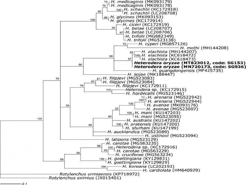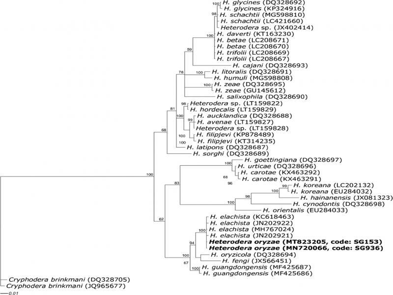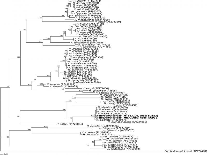 | Population | SG936, South Korea, This study | SG153, South Korea, This study | H. oryzae, Côte d’Ivoire, Nobbs et al. (1992) | H. elachista, Japan, Nobbs et al. (1992) | H. elachista, Iran, Tanha Maafi et al. (2004) |