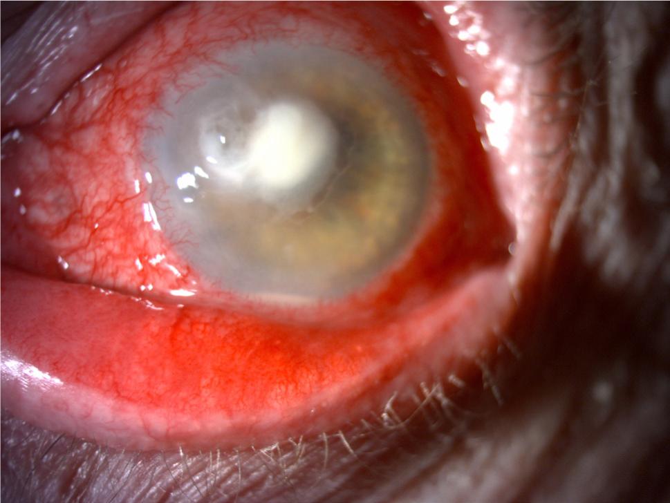 The disease symptoms of the cornea from which A. penicillioides was isolated.