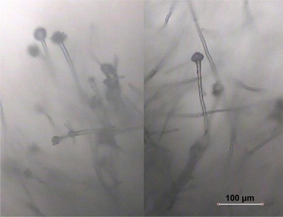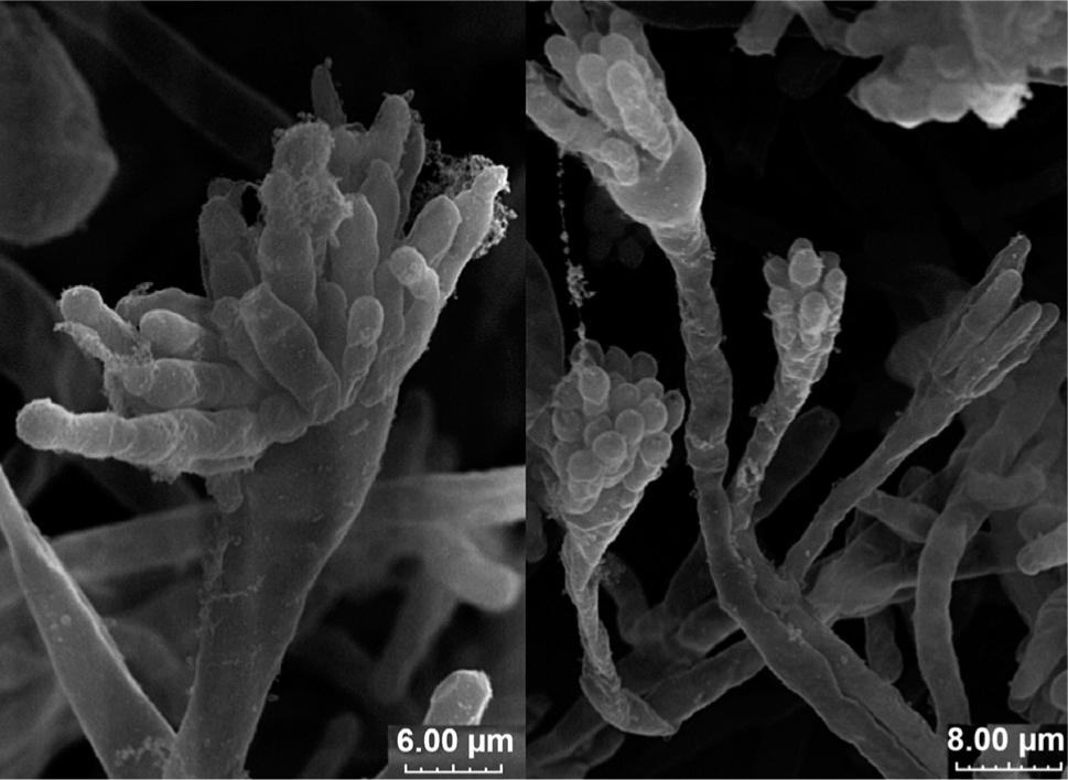 Macroscopic and microscopic observations and photographic documentation were performed from the start of visible colony growth, i.e. from day 17 of culture. Photographs of the morphological structures using a Scanning Electron Microscope (SEM) (Tescan Vega/LMU) were taken at the Central Laboratory of Agro-Ecological (CLA), the University of Life Sciences in Lublin.