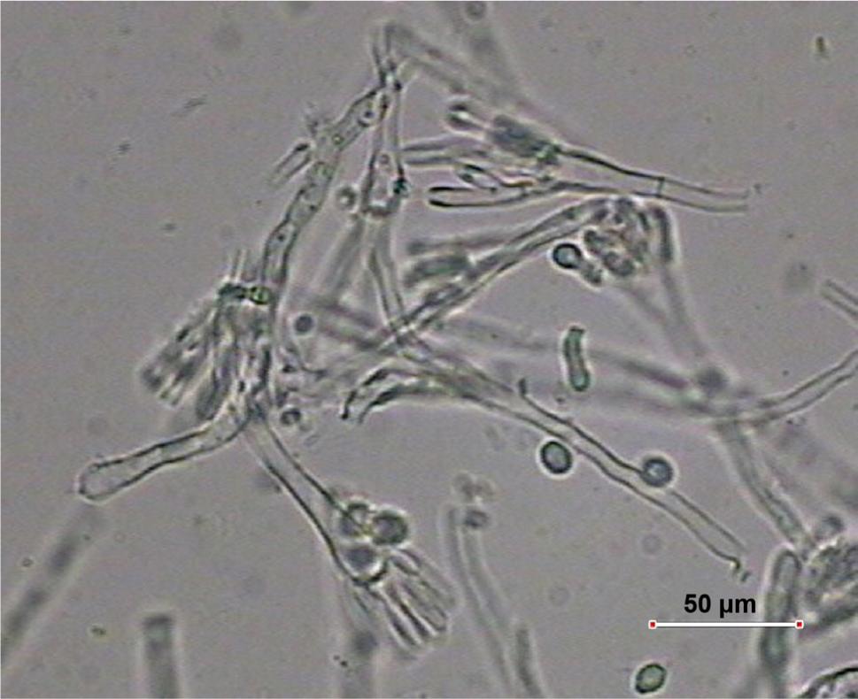 Patient Characteristics. An 84-year-old man was treated for pneumonia a few months ago before his admission to the hospital. Moreover, he was also treated for diabetes, hyperthyroidism, atherosclerosis and kidney disorder. This patient was hospitalized because of severe keratitis of unknown aetiology. Cornel scrubs and cultures were taken for the microbiological analysis on different culture media. The negative results for bacteria and fungi were obtained after seven days of culture on the appropriate media. In spite of the empirical treatment with antibiotics and antifungal agents the corneal inflammation continued to be very severe. After nine days of local and systemic treatment we decided about corneal transplantation “on hot”. The tissue of the cornea was taken to the microbiological examination. After the seven days of the culture on PDA and MA culture media, using standard laboratory methods (FAO 2006) no colonies were visible on the media. Despite on this we decided to carry on our analysis for a longer time.