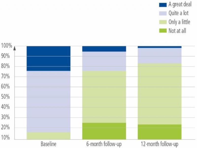 Overall burden of impairments in daily functioning during the study period. The proportions of patients at the respective visit are shown.