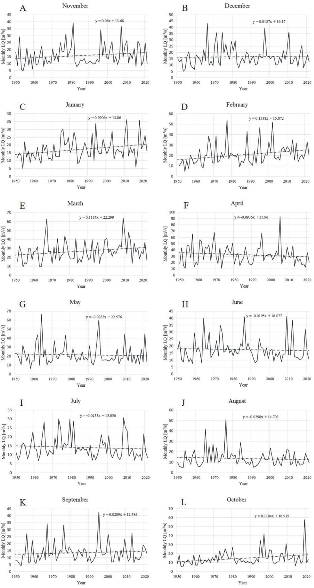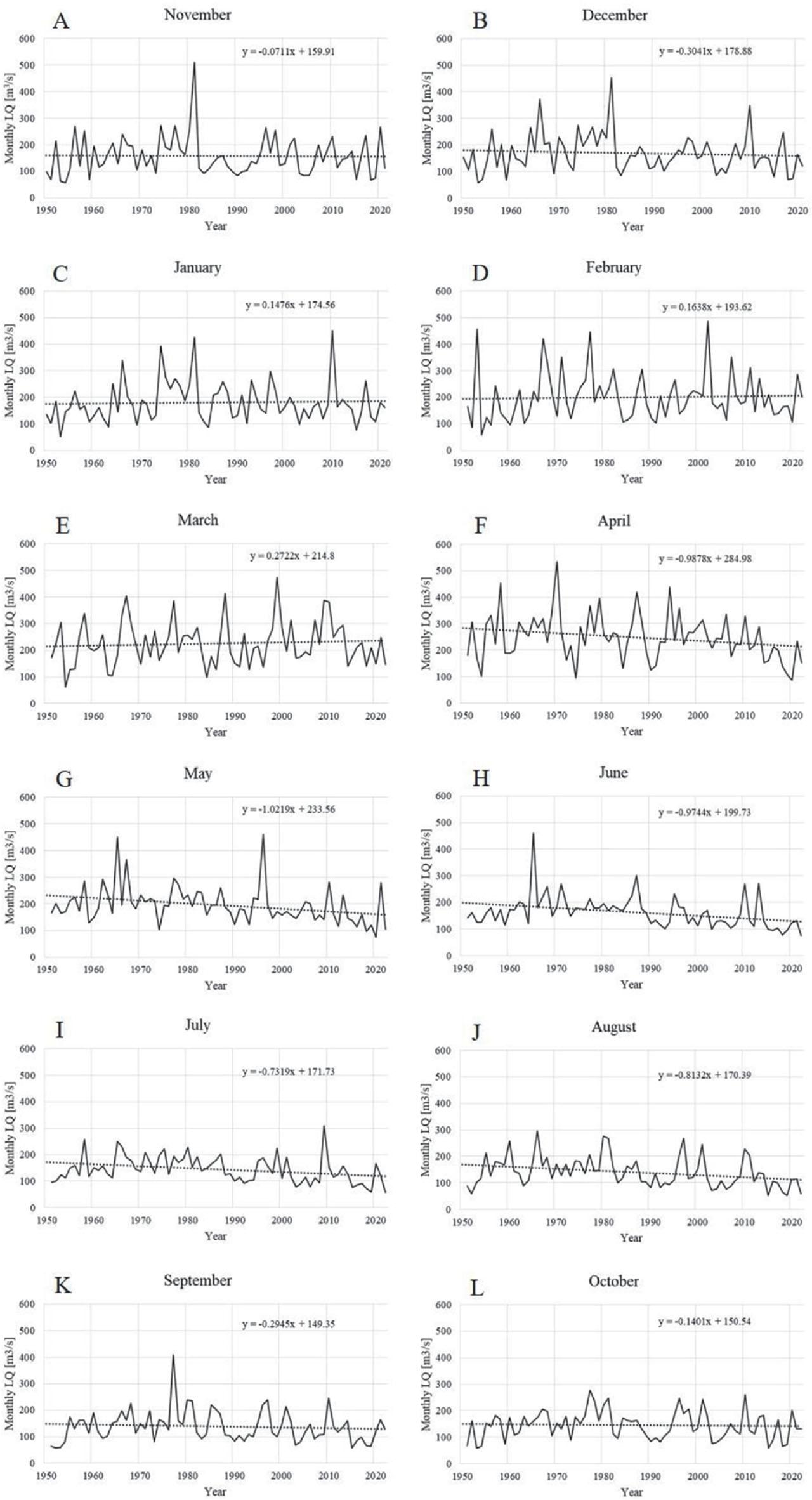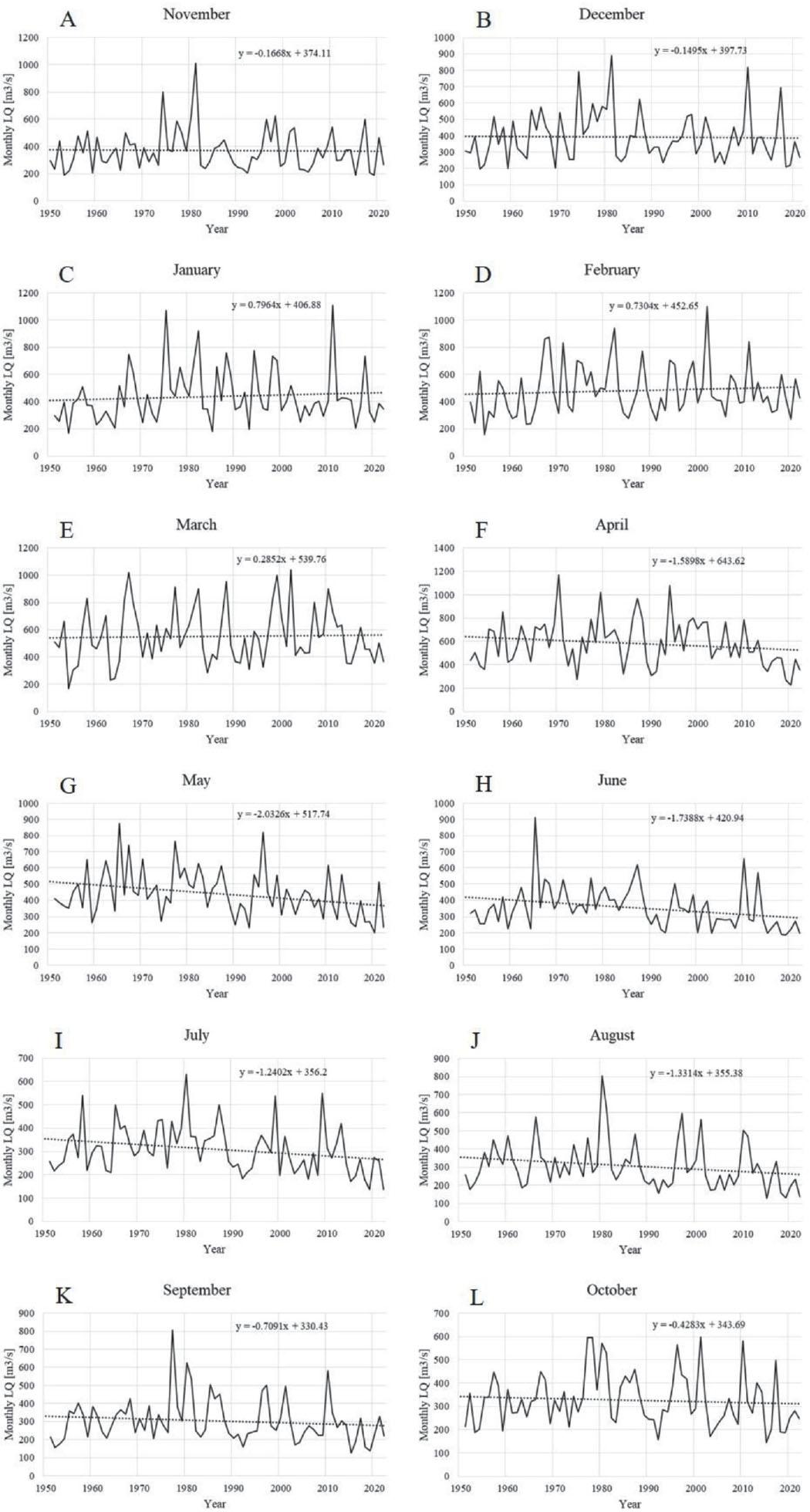 p-values of the Mann–Kendall test for the lowest monthly discharges of the Oder in a particular month over the period of 1950–2022