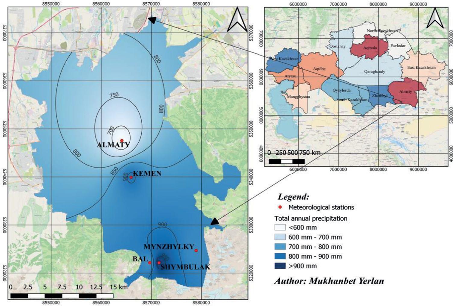 Map of annual precipitation distribution in Almaty city