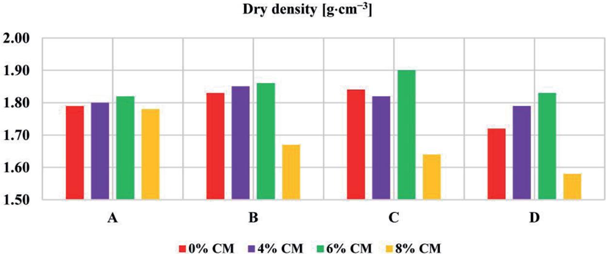 Comparative graph of dry density values of soil with cactus mucilage (CM)