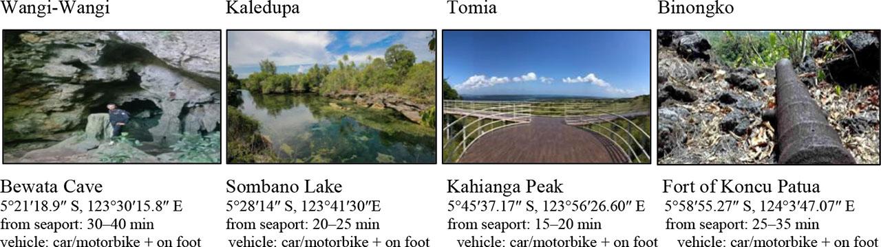 Field observation: extensively on four main islands (Wangi-Wangi, Kaledupa, Tomia, and Binongko). The attractions of each island were observed, carefully recorded, collected, and focused on tourism potential. Team members from residents were certainly involved.