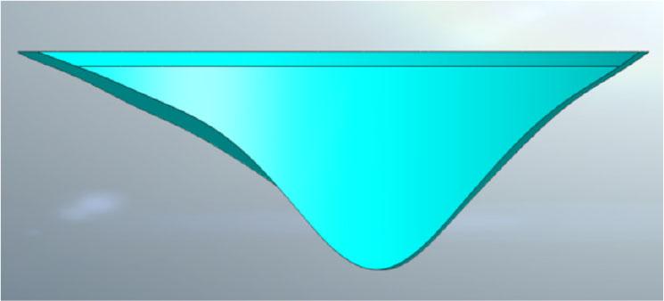 The Tichy-Haf Dam is a double-curvature arch dam with varying radii and angles and is asymmetrical. The dam stands 80 m tall and has a crest length of 275 m. The width at the crest is 5 m, widening to 27.75 m at the base. In the finite element model of an arch of the Tichy-Haf Dam, the flood spillway was excluded due to the small size of the openings between the concrete blocks. The dam structure was created using the AutoCAD software and then exported to Midas GTS NX. The natural terrain was modeled in 3D in Midas GTS NX, which accounted for the actual geomorphology of the area. Midas GTS NX is a piece of finite element analysis software used for advanced geotechnical analysis, including soil and rock deformation and stability, dynamic vibrations, and soil-structure interaction in both 2D and 3D. It is utilized by geotechnical, civil, and mining engineers for analysis, testing, and design (System, 1989), supporting various geotechnical projects such as subways, tunnels, pile foundations, dams, and mines (Shen, 2022). Figures 2, 3 and 4 illustrate the geometric model of the Tichy-Haf Dam.