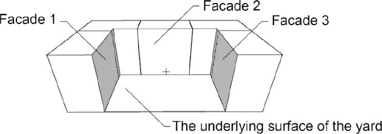 The heating temperatures were obtained for all the considered surfaces. To achieve a more precise statement of the problem related to determining the air temperature in the courtyard, it is necessary to use the Stefan–Boltzmann formula, considering the angular radiation coefficient and consistently determining the additional heat flow obtained by the radiant heat exchange of the receiving surface having an area of 2,200 m2 from each of the adjacent facade surfaces.